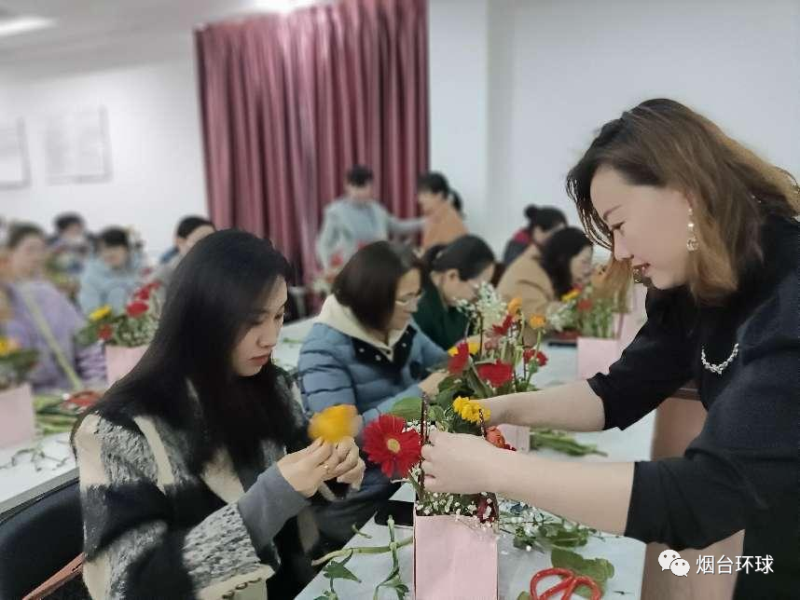 “繁開三月日,譽載滿花籃”,下午一點活動在創意插花的芬芳中拉開了帷幕。公司工會特意邀請花藝老師為在場人員講述了各種花的花語,并從選花、裁剪、造型設計、顏色搭配等方面講授了藝術插花技巧。老師現場示范指導大家進行插花,讓大家體驗親自創作的樂趣。大家充分發揮想象、精巧構思,邊聆聽邊實踐,將不同花材錯落有致的搭配在一起,制作出一個個色彩繽紛、清雅別致的花藝作品,并紛紛拍照留念。
